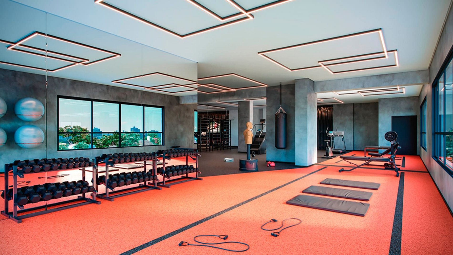 The Hub Compact Life is presented as a wellness complex designed with a focus on well-being and quality of life. Within the context of compact luxury, the building offers spaces such as lounges for relaxation, a fitness area with a terrace, pilates, yoga, sauna, spinning room, recreational court, and massage room.