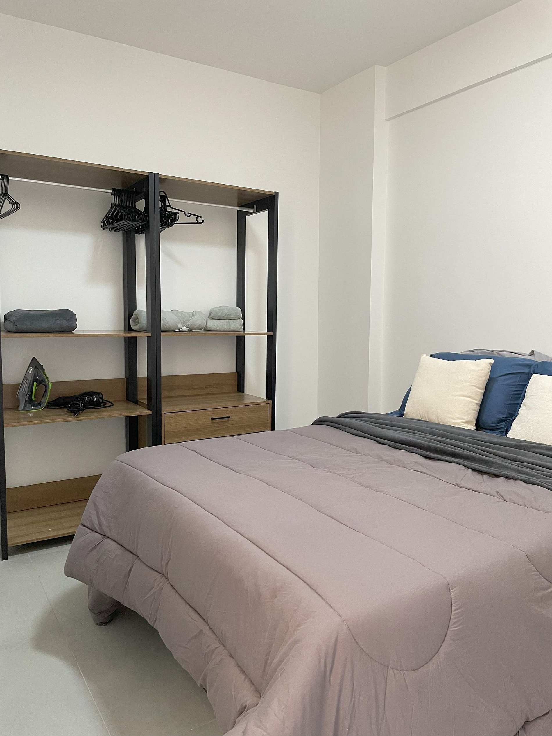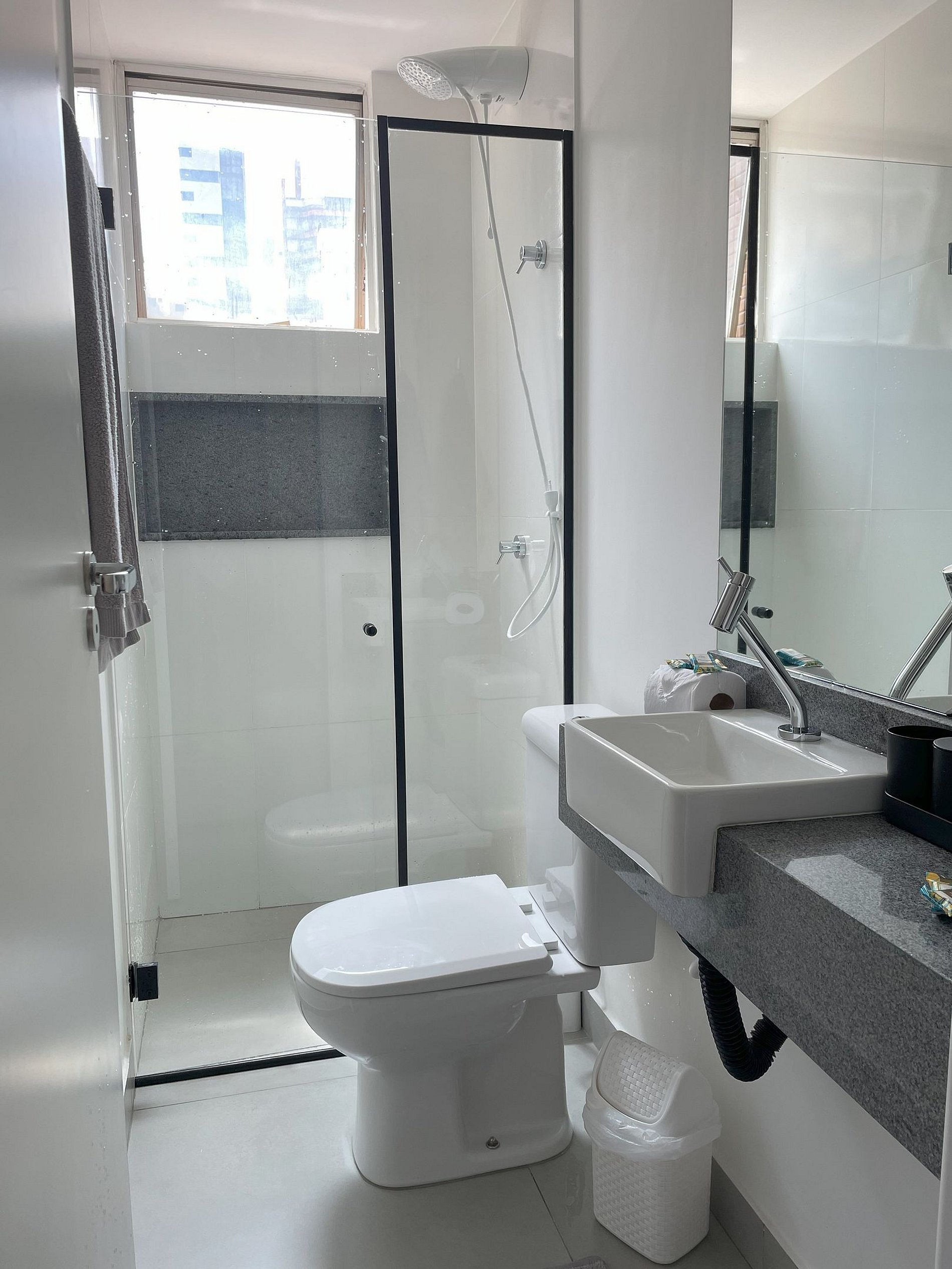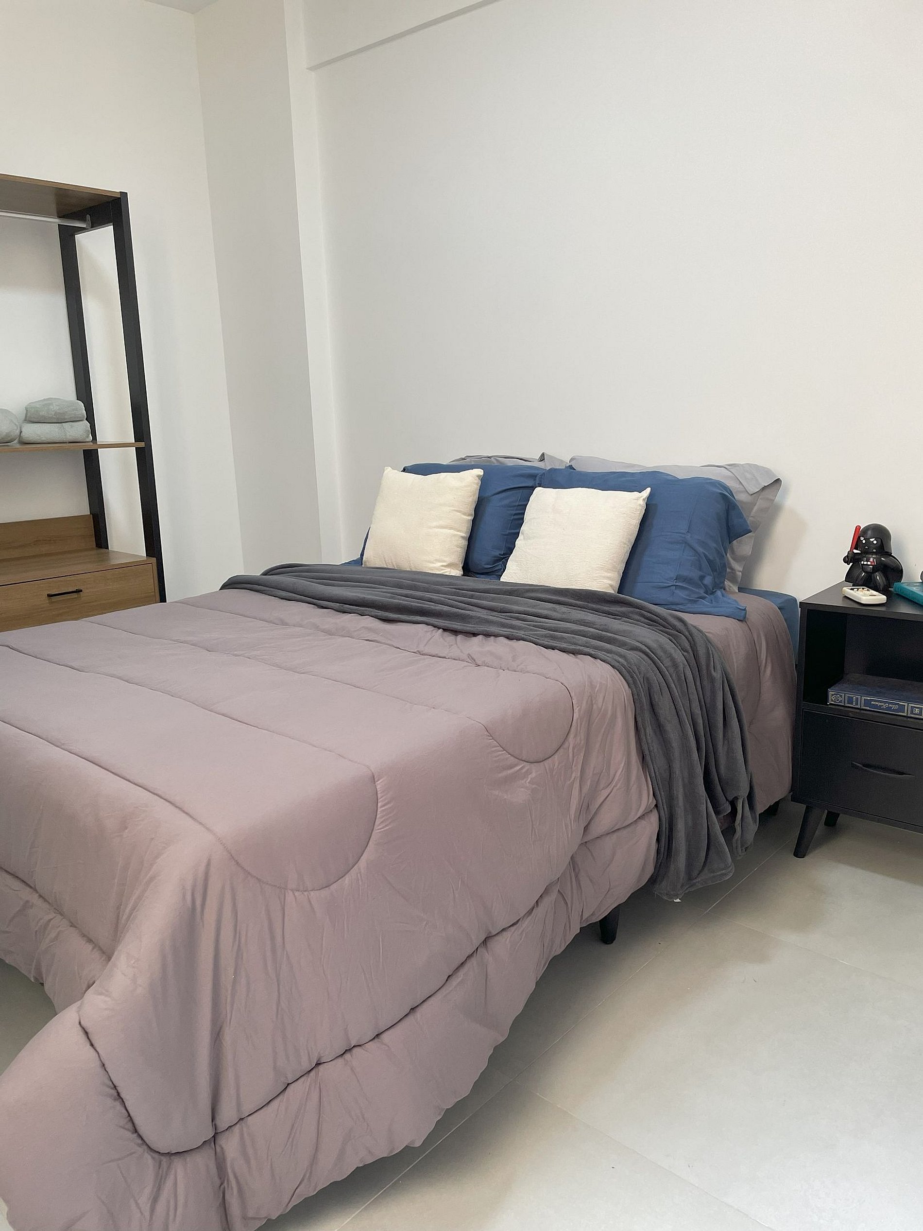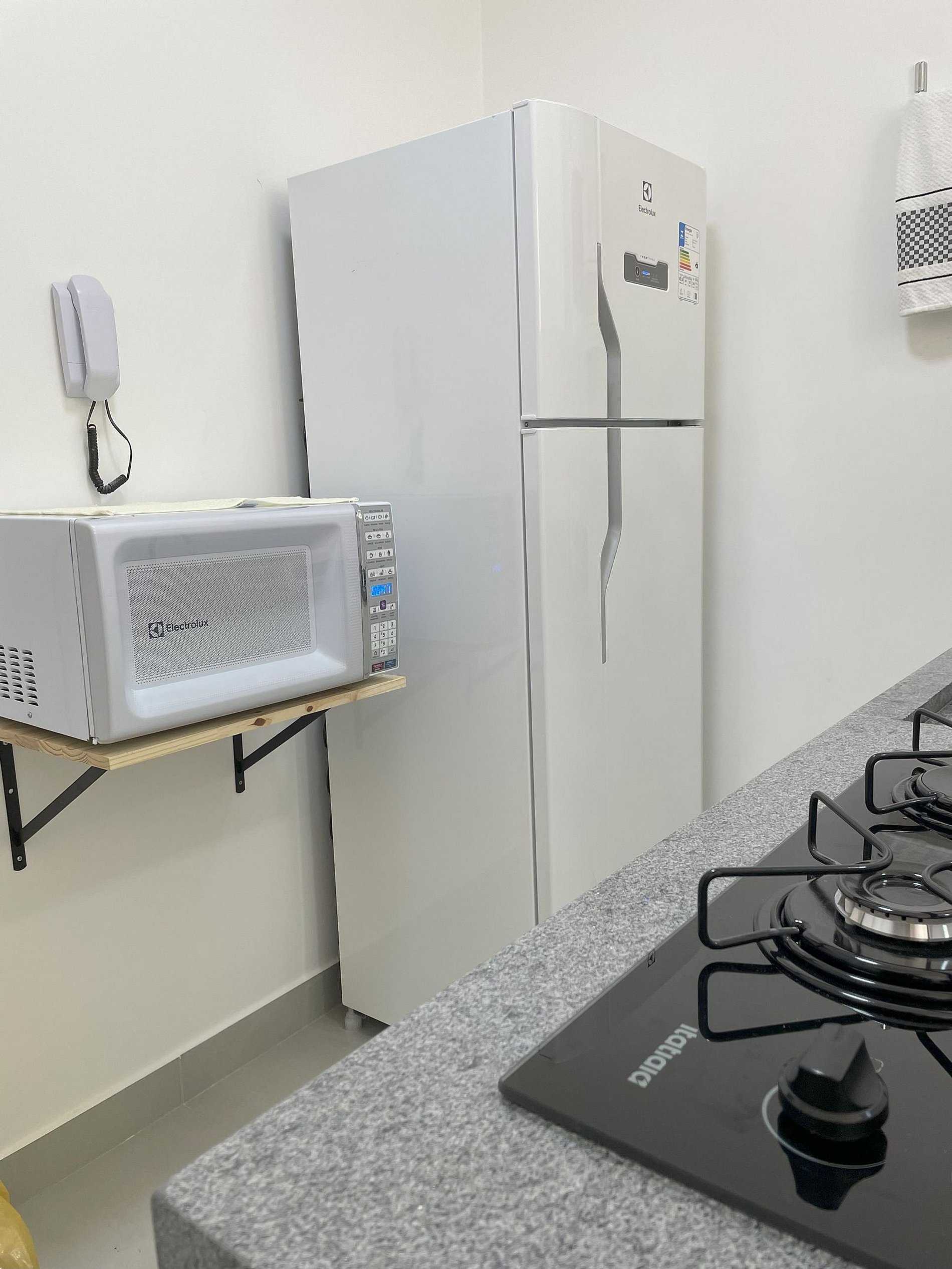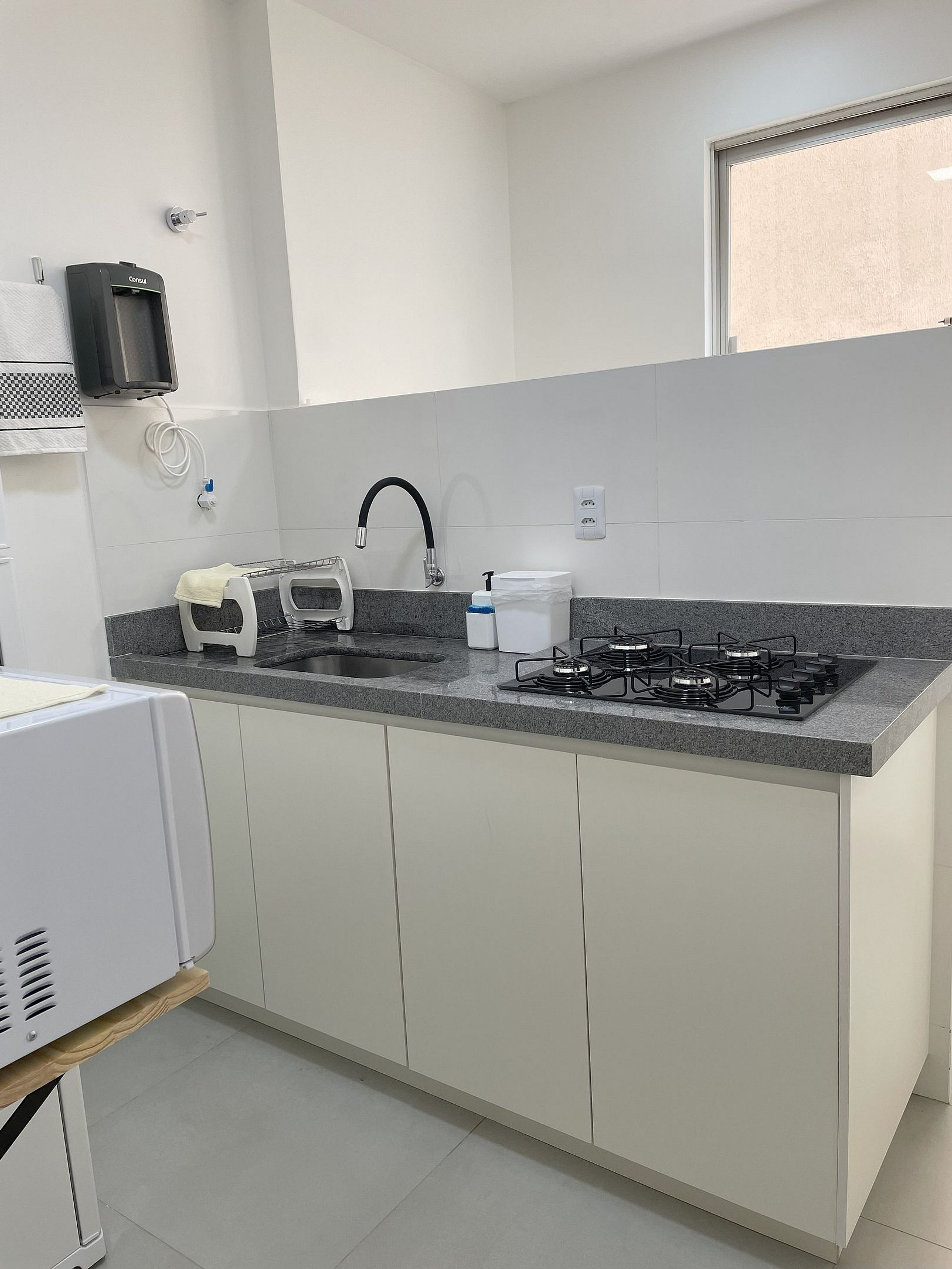 Rest after an incredible day in a comfortable queen-size bed. In the living room, you can enjoy unique moments to enjoy a glass of wine, work or even watch a movie lying on the double sofa bed. In the kitchen/service area, you can prepare that special dinner, as we offer a fully equipped kitchen with a refrigerator, water purifier, cooktop and various accessories. It includes a covered garage on site for small vehicles. If you have a larger car, please contact us in advance to check the possibility of changing spaces. The building has a washing machine and a dryer, which can be paid for through the OMO app.
