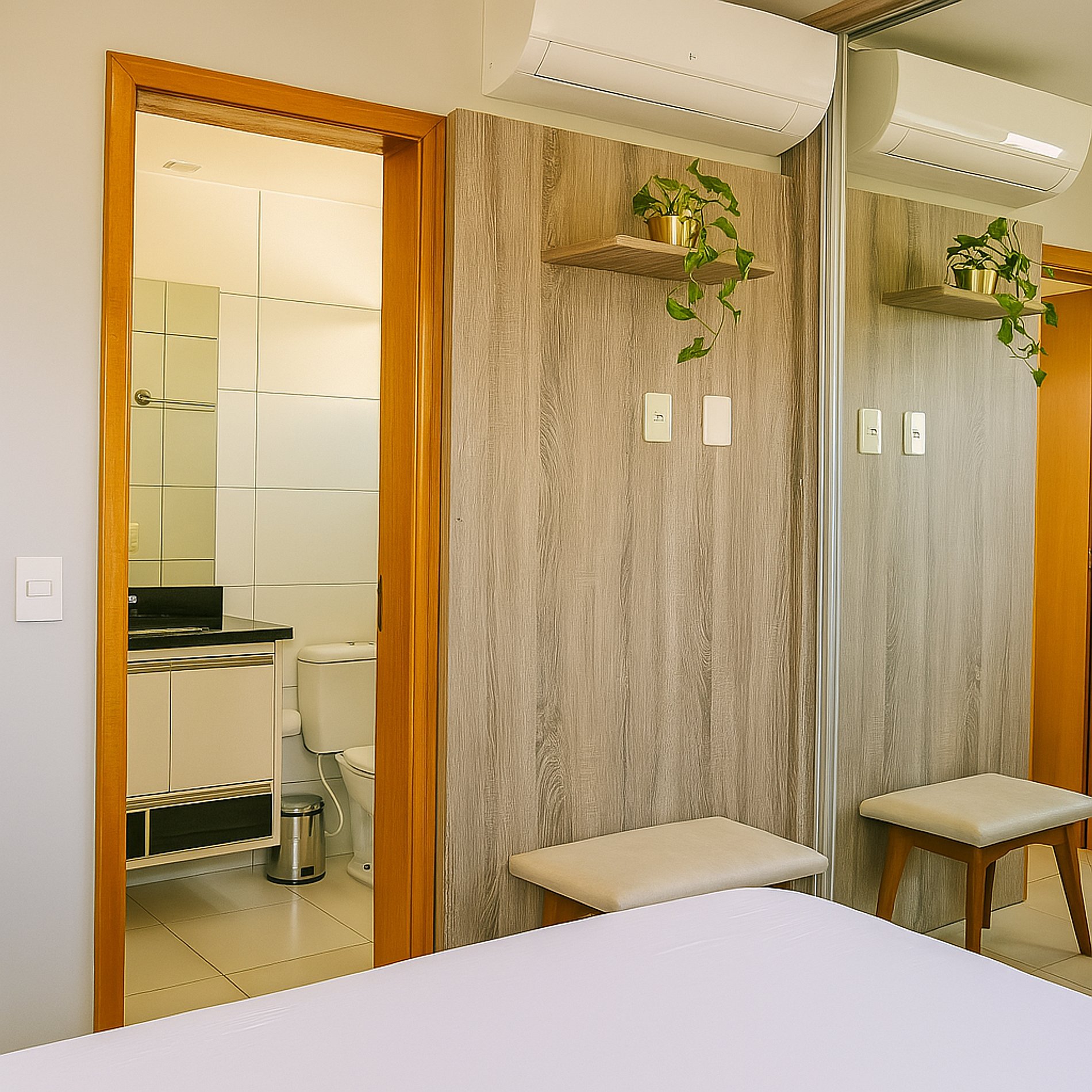 Ar condicionado na sala e nos quartos