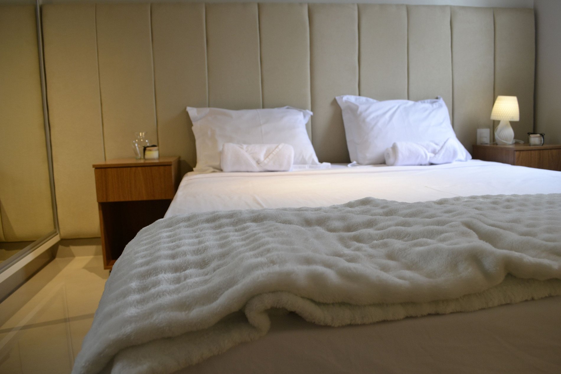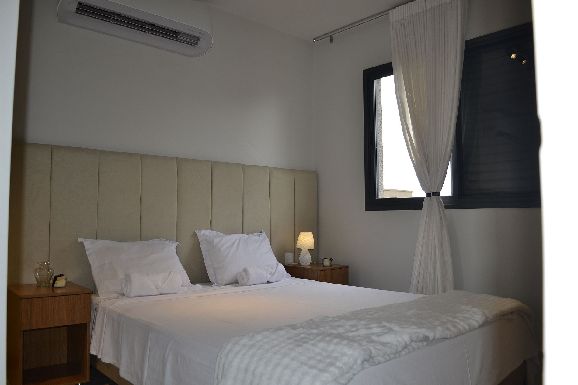 Conforto Térmico: Ar-condicionado potente e roupas de cama/banho de alta qualidade inclusas.