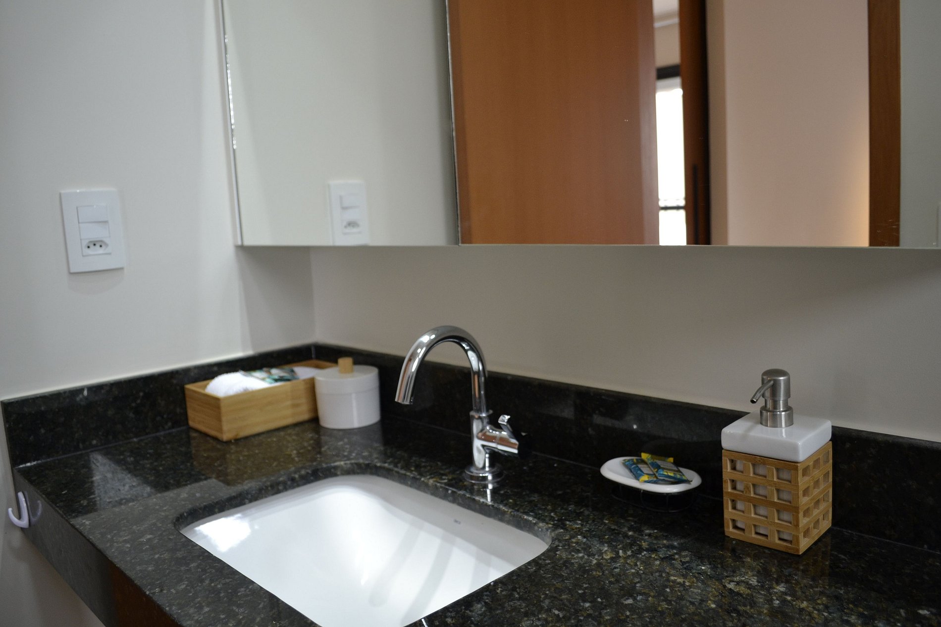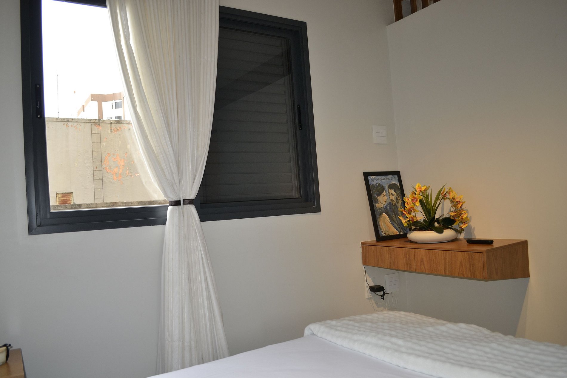 Tomada elétrica próxima à cama