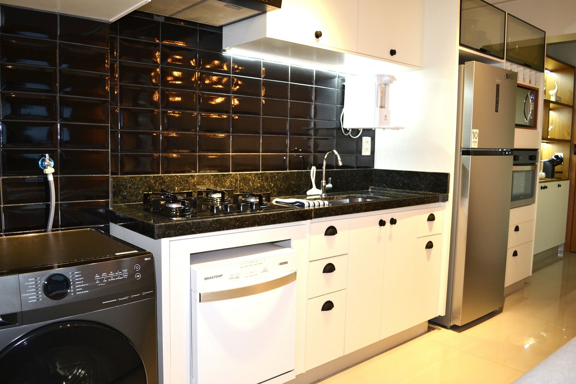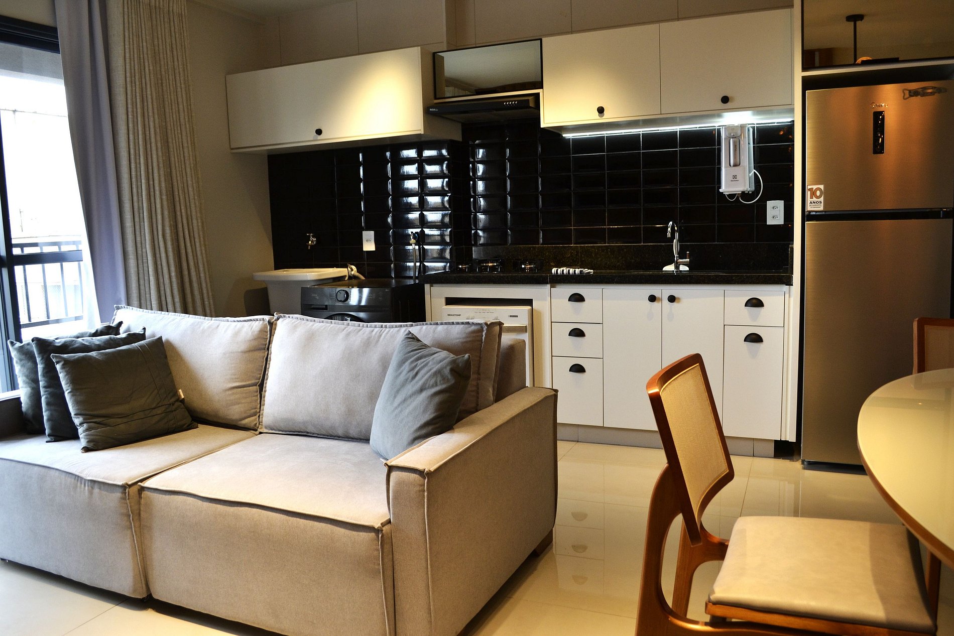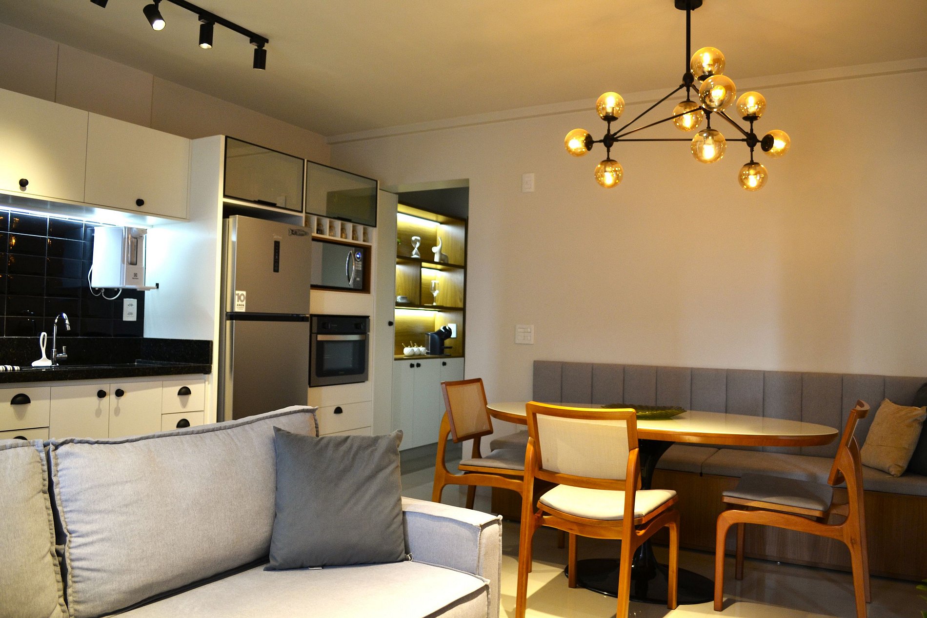 Cozinha Completa: Equipada com micro-ondas, cafeteria, sanduicheira, liquidificador e todos os utensílios para o preparo de refeições.