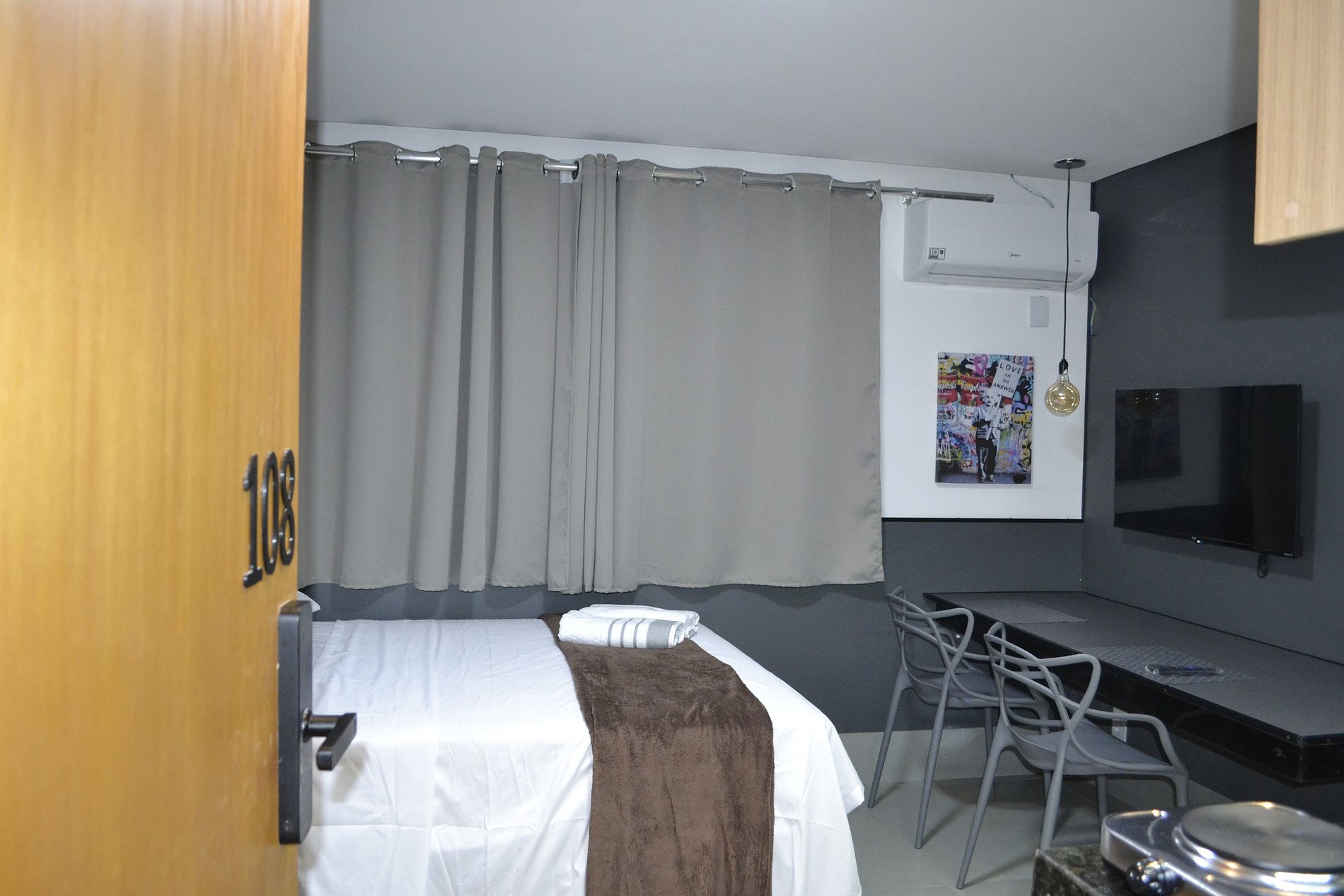 Você vai se sentir em casa neste apartamento tipo estúdio (kitnet) recém-renovado e pensado nos mínimos detalhes. Localizado no bairro Real Grandeza, estamos estrategicamente posicionados bem próximos ao Polo Industrial de Aparecida de Goiânia, sendo a opção perfeita para profissionais em viagem de negócios ou casais que buscam conforto e praticidade.
