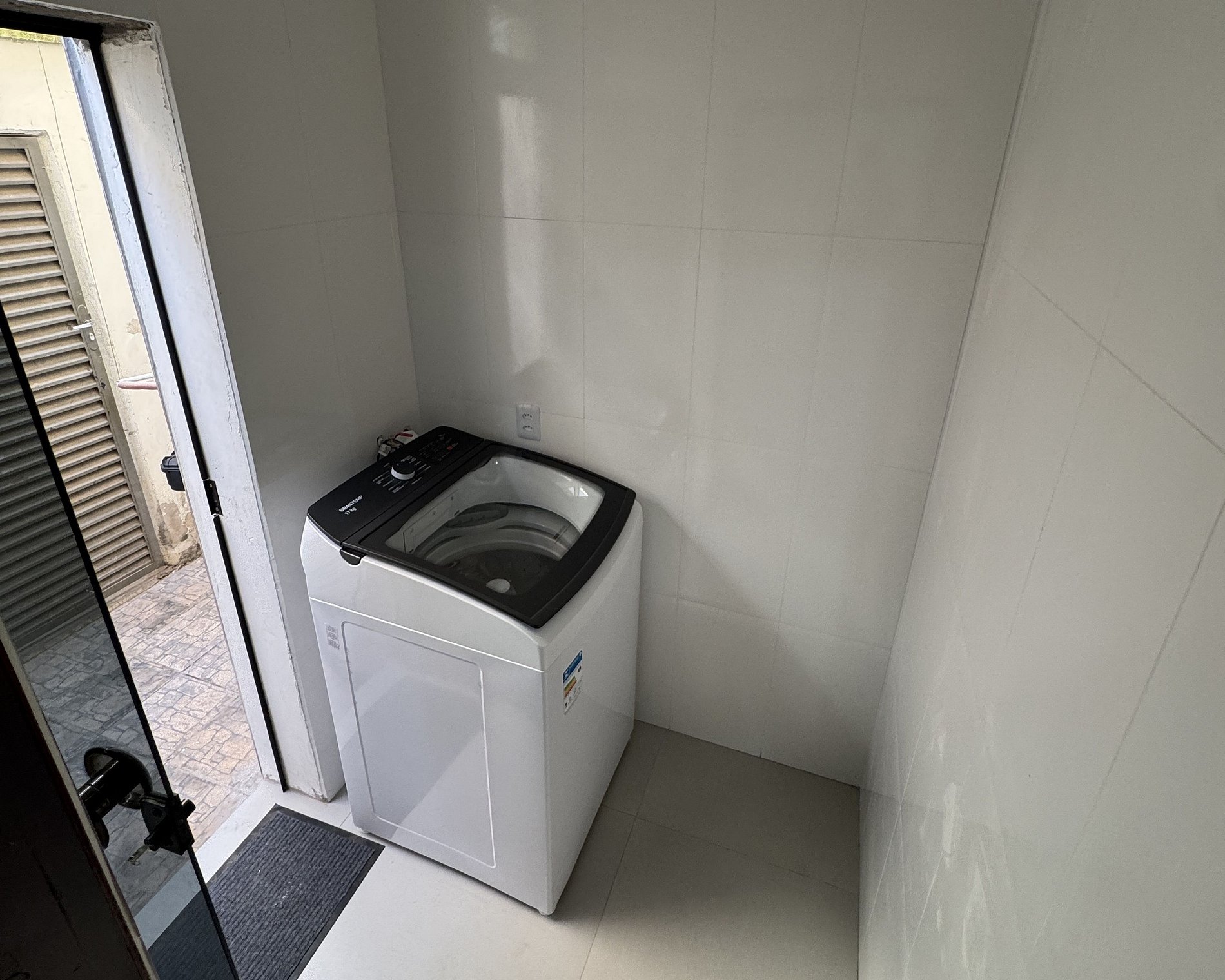Área de serviço com máquina de lavar roupas;